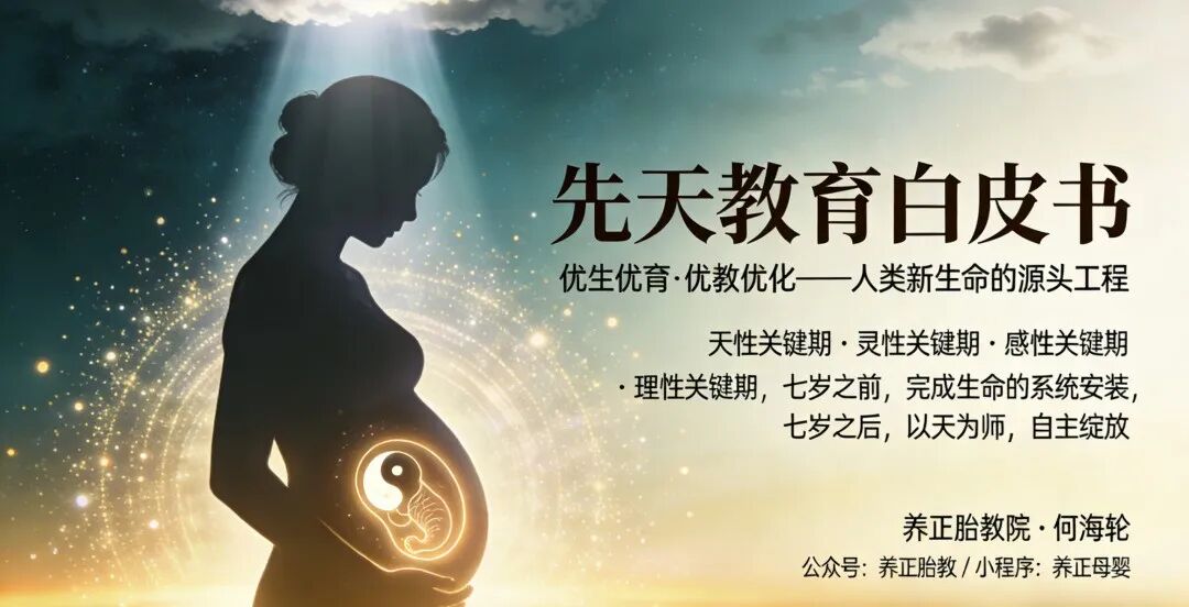 当代生育观念多停留在生理健康与知识灌输层面,忽视了生命源头的灵性本质。本白皮书基于养正胎教二十七年实践,融合《化书》哲学、东方生命观与现代发育心理学,提出“先天教育”理论体系,重新定义从备孕到七岁的生命关键期。