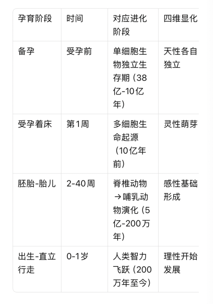 人类个体从备孕到直立行走的40周,浓缩重演了人类38亿年的进化历史,同时集中体现了天性、灵性、感性、理性的完整显化。